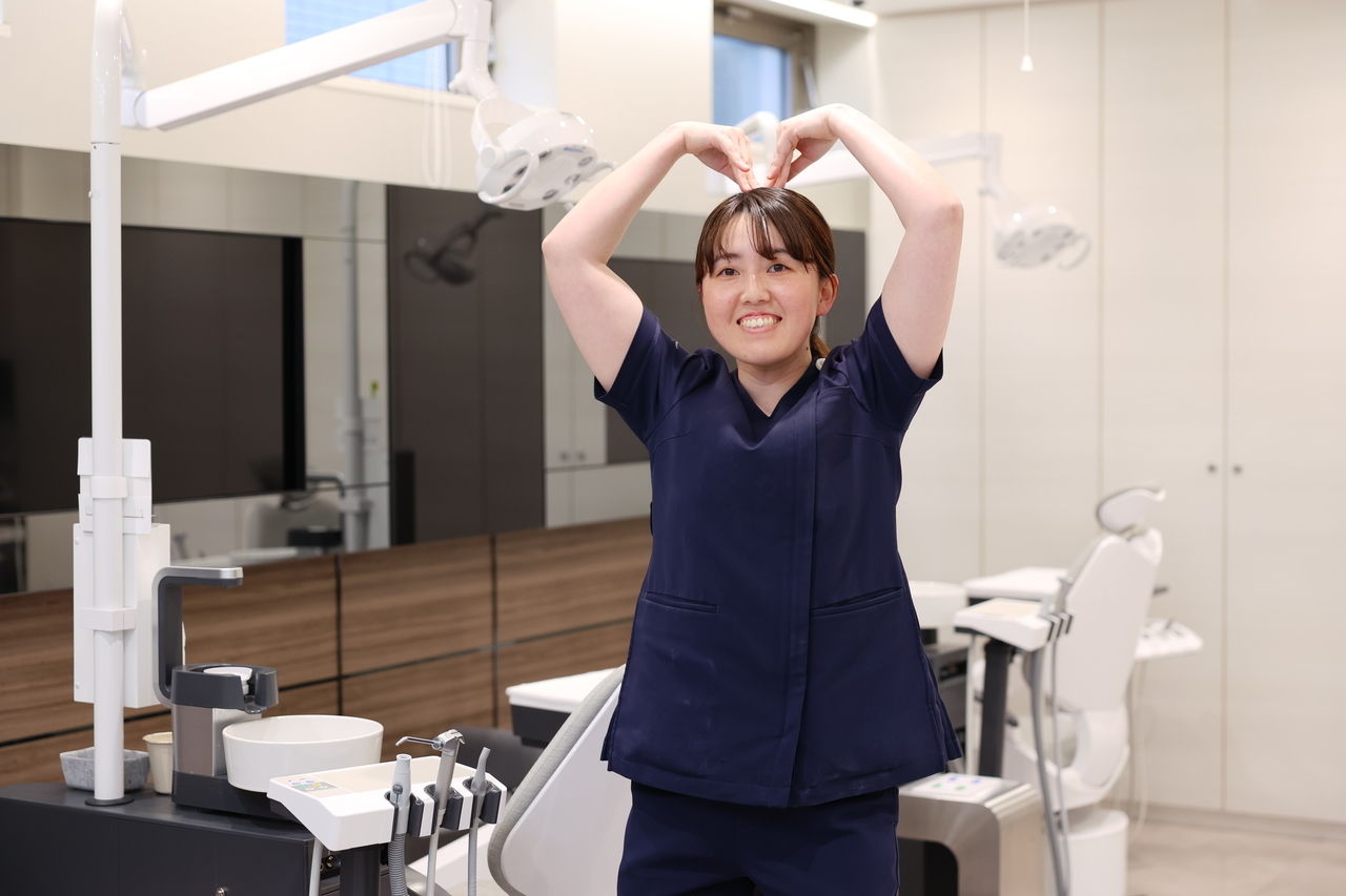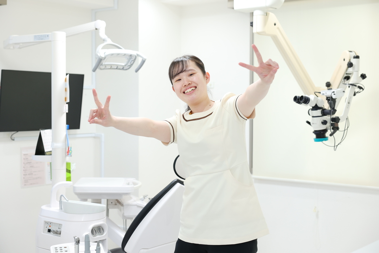 現在は、技工・カウンセリング・受付・診療補助など幅広い業務に携わっています。多くの業務を経験することで、さまざまな角度から物事を捉える力を養うことができ、自分の成長を日々実感しています。